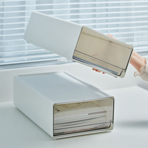 스케치룸의 투명 정리함은 다양한 사이즈와 형태(트임형, 반오픈 책꽂이형 등)로 출시되어 있어, 집안 구석구석을 정리하는 '만능템'으로 활용됩니다. 투명해서 내용물을 쉽게 확인할 수 있다는 점은 물건을 찾기 위해 정리함을 모두 꺼내야 하는 수고를 덜어줍니다.
